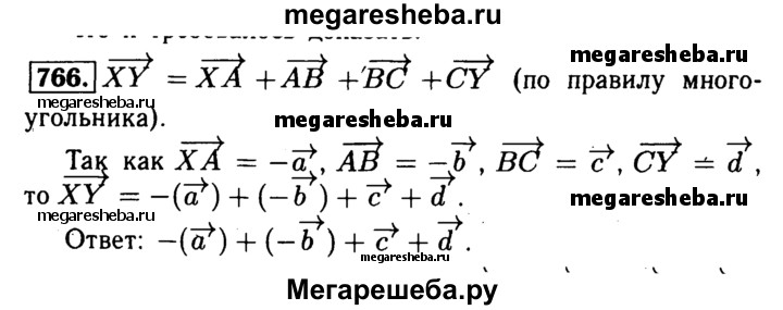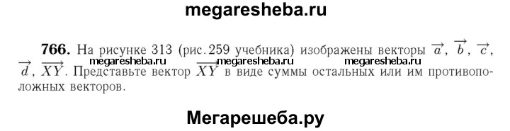 766 На рисунке 259 изображены векторы а, Ь, с, d, XY. Представьте вектор XY в виде суммы остальных или им противоположных векторов.
