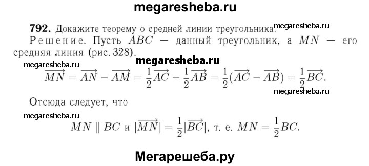 792 Докажите теорему о средней линии треугольника (п. 64).