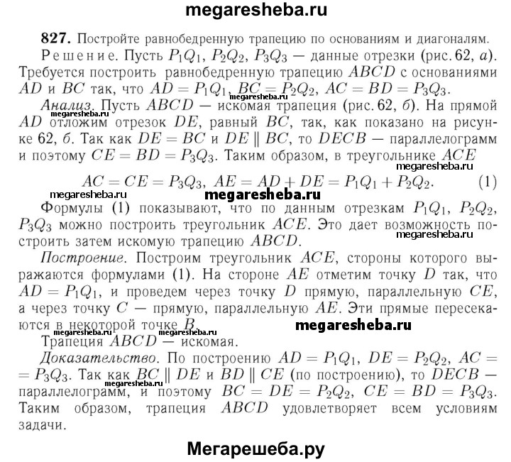 827 Постройте равнобедренную трапецию по основаниям и диагонали.