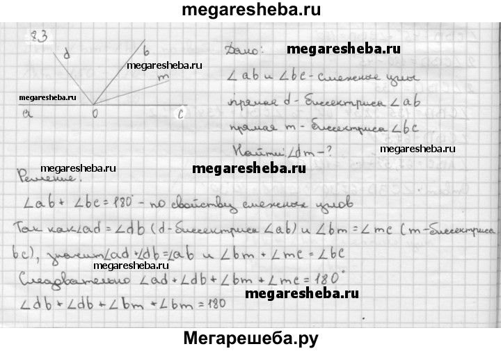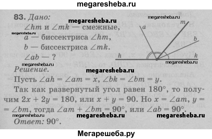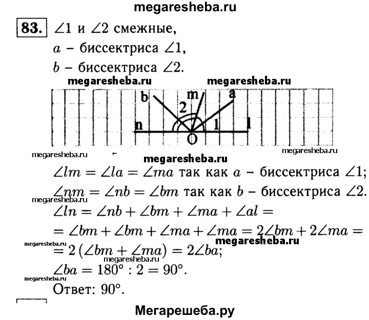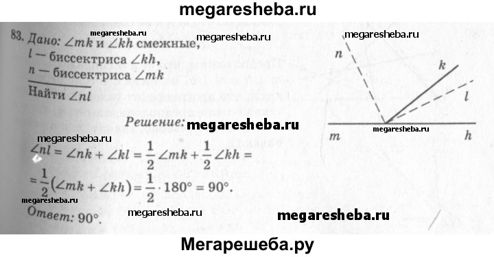 83 Найдите угол, образованный биссектрисами двух смежных углов.