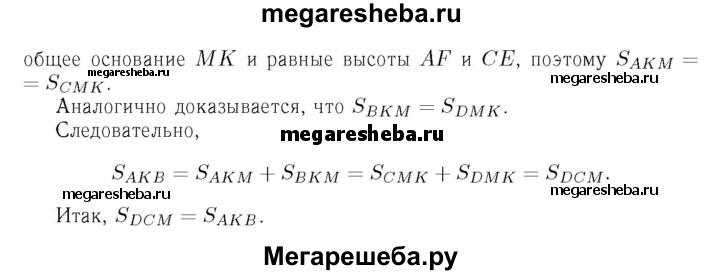 836 Прямая, проходящая через середины диагоналей АС и BD четырёхугольника ABCD, пересекает стороны АВ и CD в точках М и К. Докажите, что площади треугольников DCM и АКВ равны