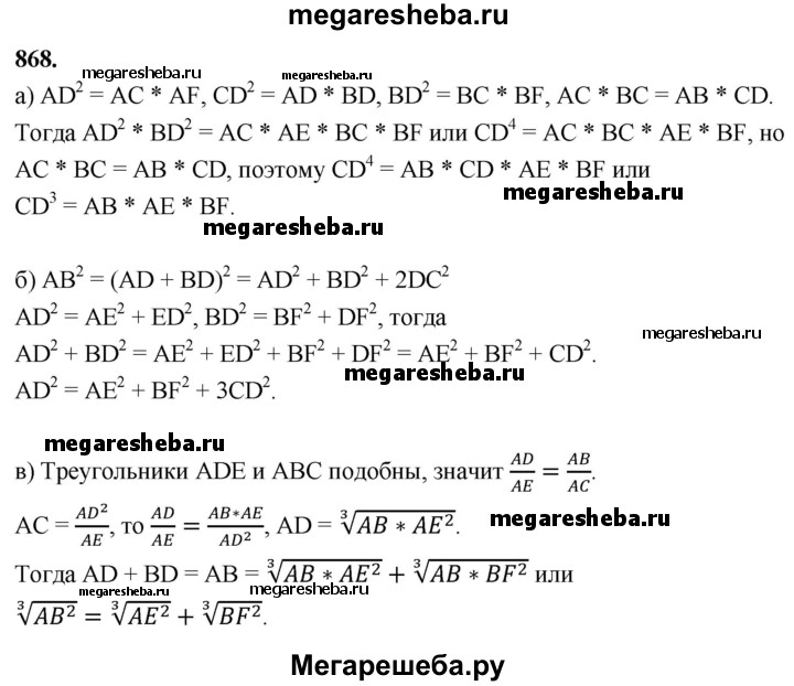 Подробный решебник (ГДЗ) по Геометрии за 7‐9 (седьмой‐девятый) класс - готовый ответ задача - 868. Авторы учебника: Атанасян, Бутузов, Кадомцев, Позняк, Юдин. Издательство: Просвещение 2016-2025.