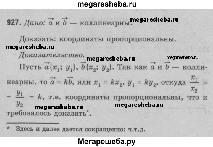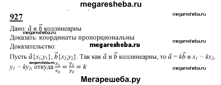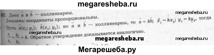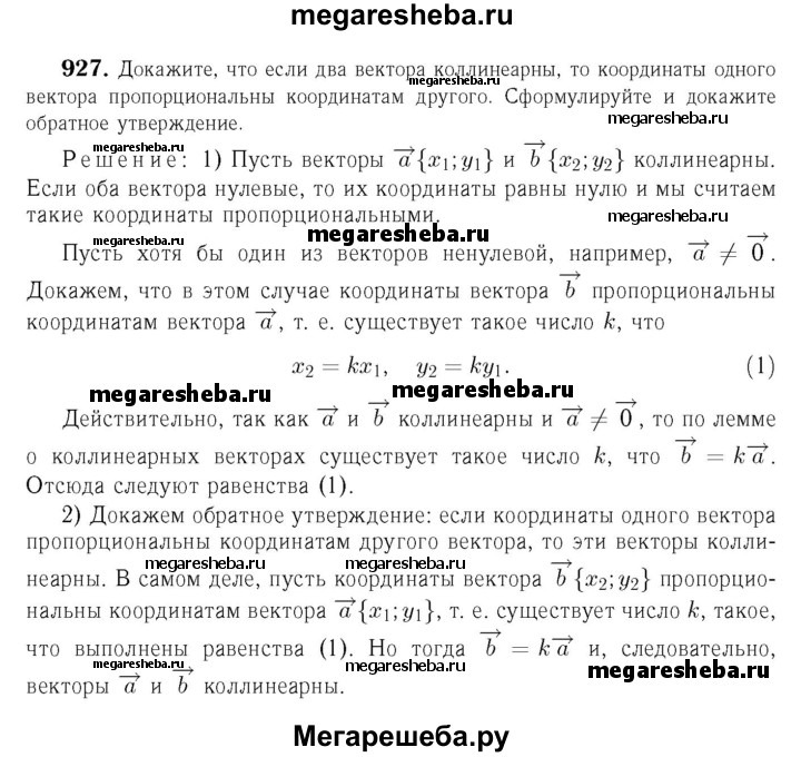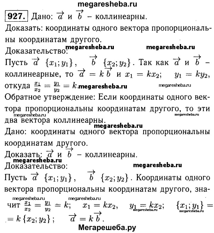 927 Докажите, что если два вектора коллинеарны, то координаты одного вектора пропорциональны координатам другого. Сформулируйте и докажите обратное утверждение.