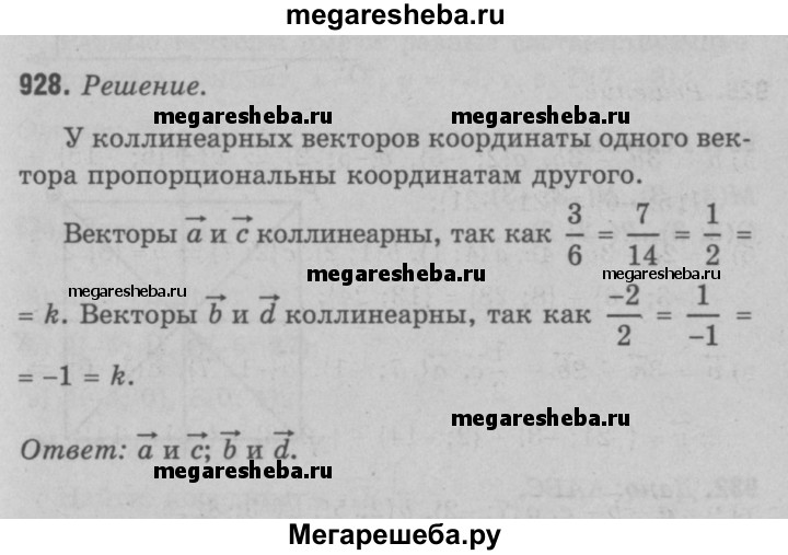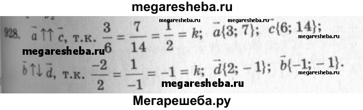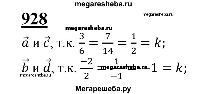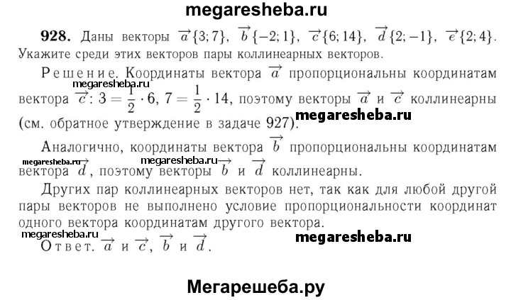 928 Даны векторы а {3; 7}, b {-2; 1}, с(6; 14}, d{ 2;-1}, е{2;4}. Укажите среди этих векторов попарно коллинеарные векторы.