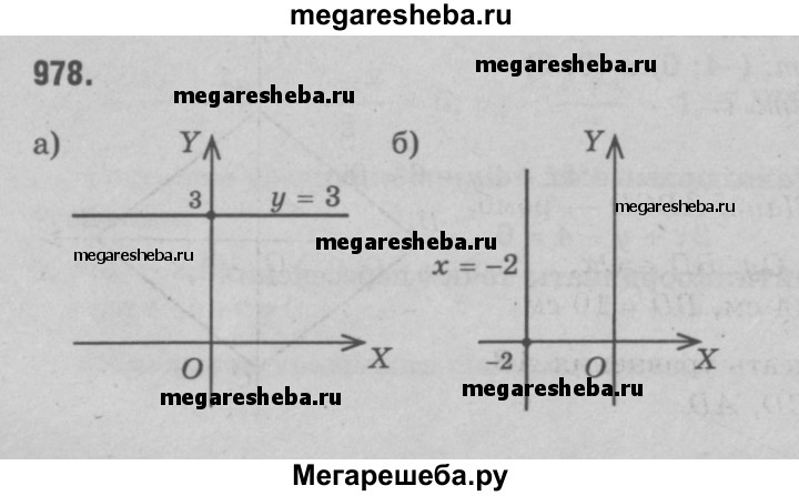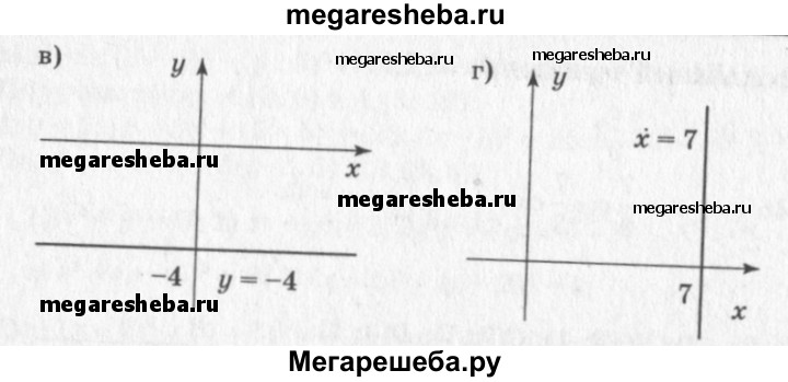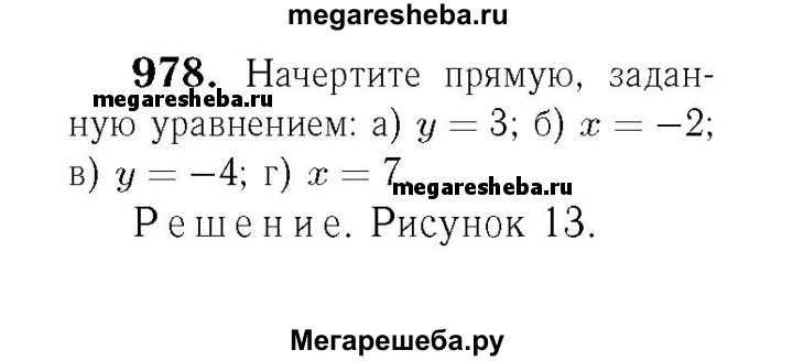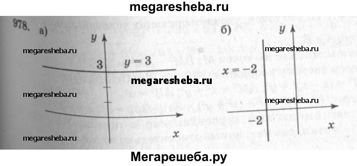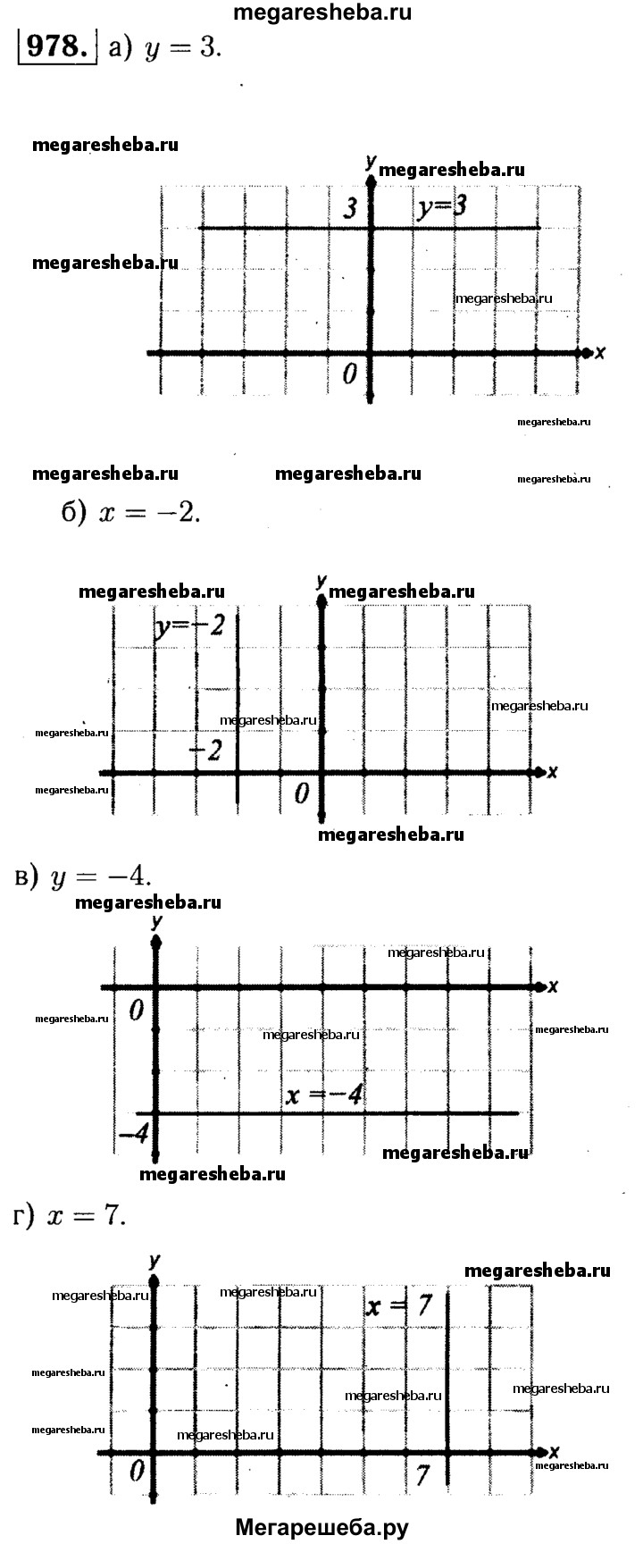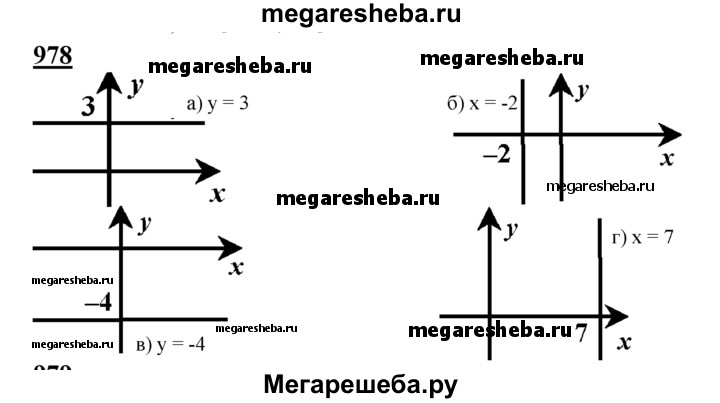 978 Начертите прямую, заданную уравнением: а) у = 3; б) х = -2; в) у = -4; г) х = 7.