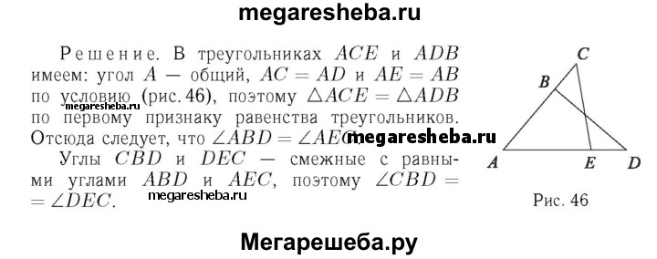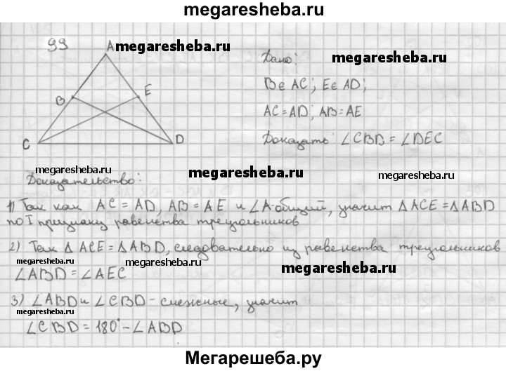 99 На сторонах угла CAD отмечены точки B и E так, что точка B лежит на отрезке AC,а точка E –на отрезке AD,причём AC = AD и AB = AE. Докажите что ∠CBD = ∠ DEC.