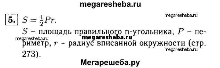5 Выведите формулу для вычисления площади правильного многоугольника через его периметр и радиус вписанной окружности.