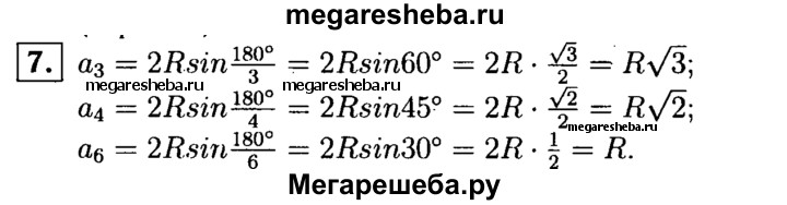 7 Как выражаются стороны правильного треугольника, квадрата и правильного шестиугольника через радиус описанной окружности?