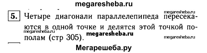 5 Докажите, что четыре диагонали параллелепипеда пересекаются в одной точке и делятся ею пополам.