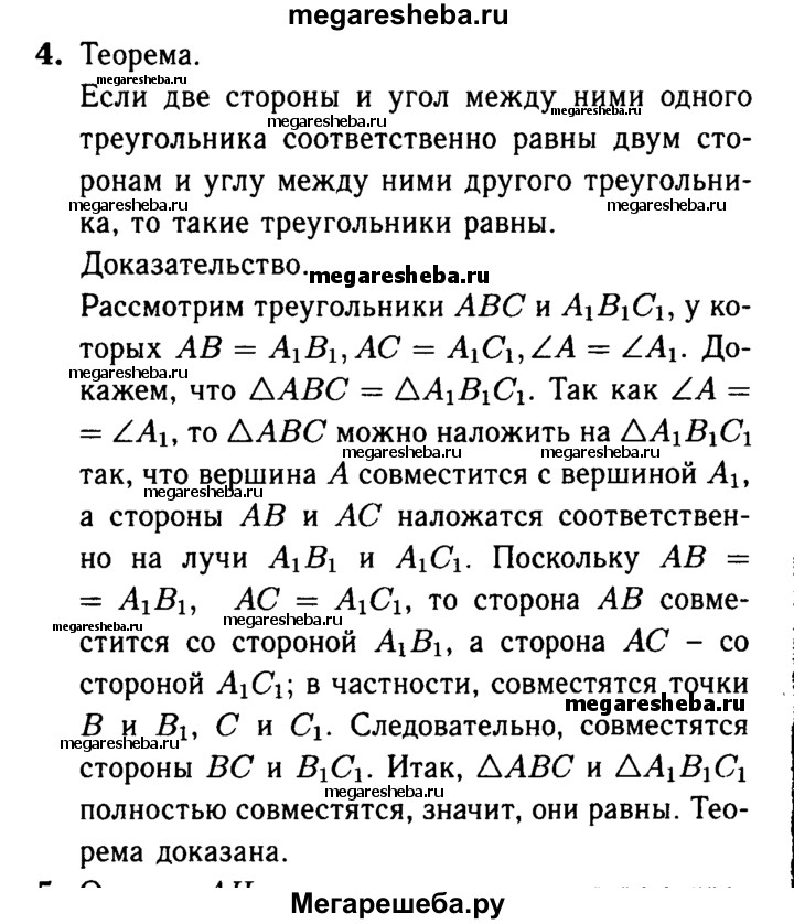 4 Сформулируйте и докажите теорему, выражающую первый признак равенства треугольников.
