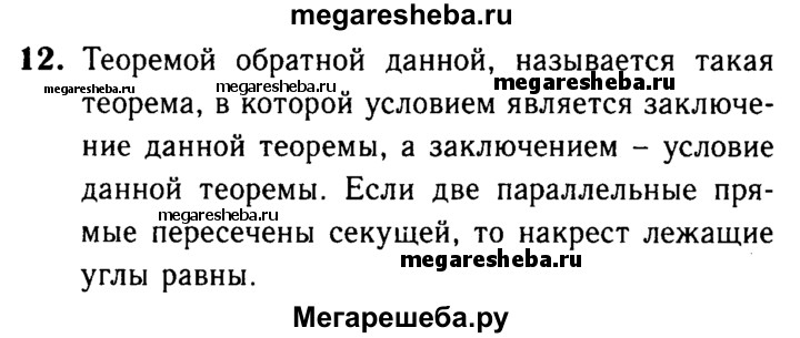 12 Какая теорема называется обратной данной теореме? Приведите примеры теорем, обратных данным.