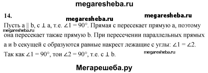 14 Докажите, что если прямая перпендикулярна к одной из двух параллельных прямых, то она перпендикулярна и к другой.