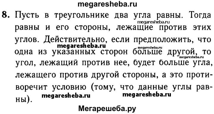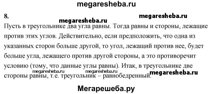 8 Докажите, что если два угла треугольника равны , то треугольник равнобедренный.