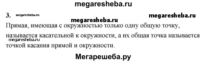 3 Какая прямая называется касательной к окружности? Какая точка называется точкой касания прямой и окружности?