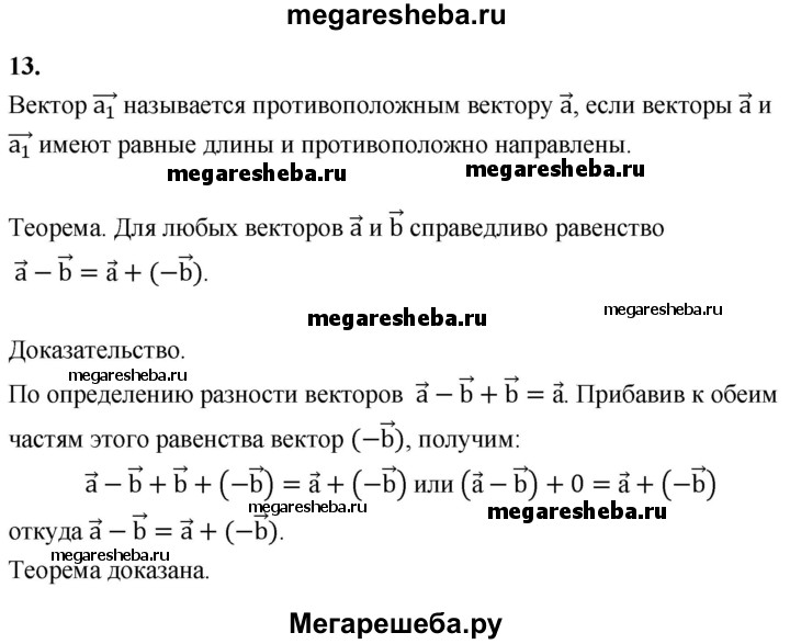 13 Какой вектор называется противоположным данному? Сформулируйте и докажите теорему о разности векторов?
