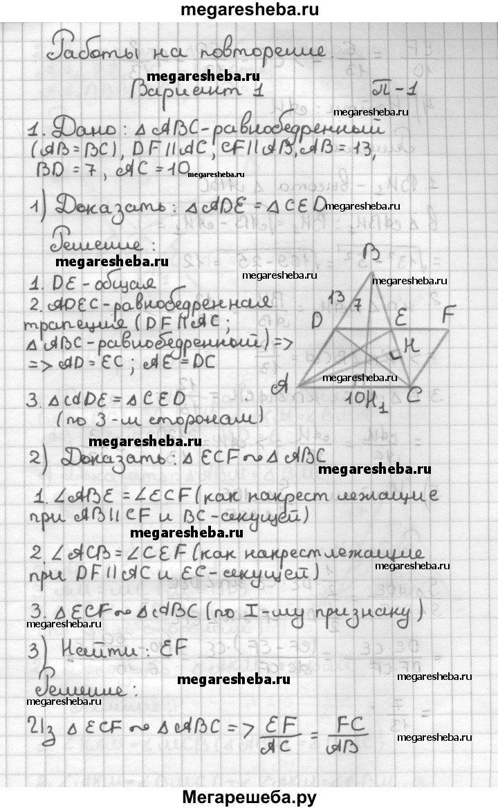 ГДЗ по геометрии 9 класс Зив дидактические материалы Работы на повторение П-1. Варианты - 1