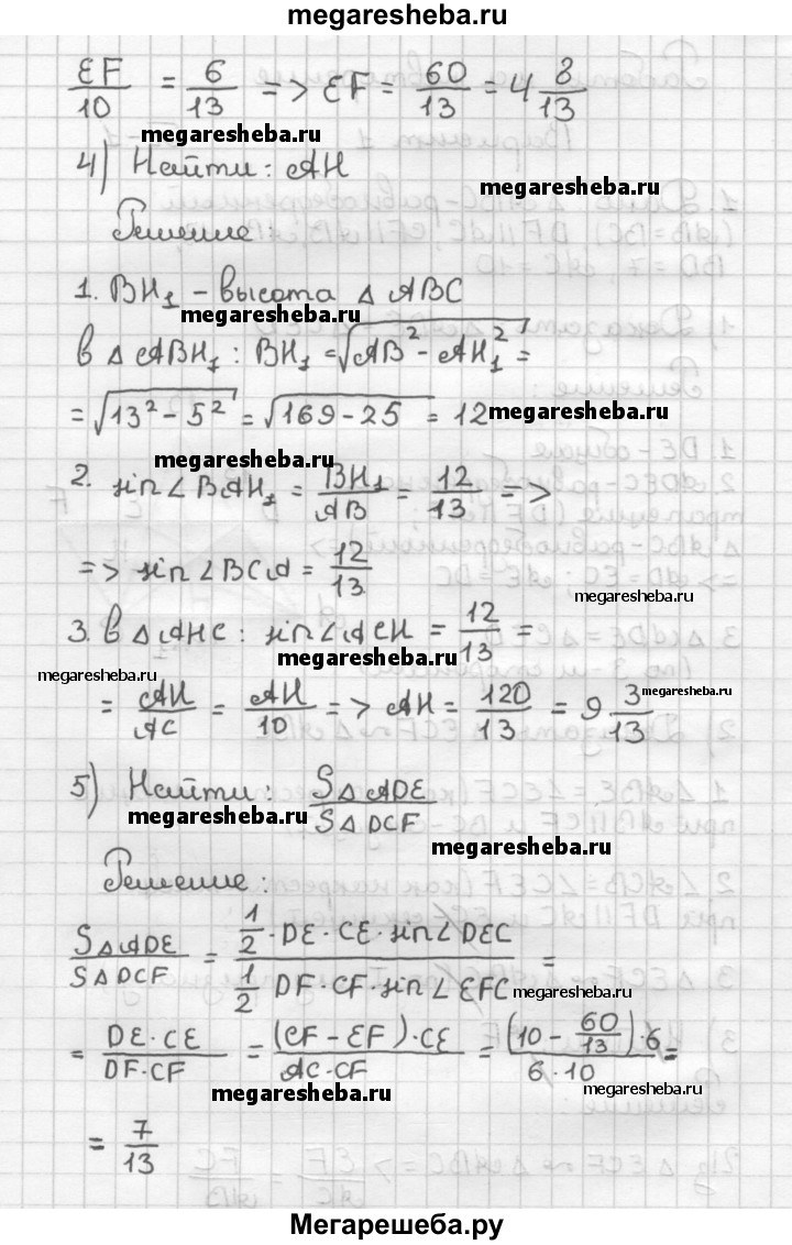 ВАРИАНТ 1 ∆ 1. На рисунке 50 треугольник ABC равнобедренный (АВ = ВС), DF || АС и CF || АВ, АВ = 13, BD = 7, АС = 10. 1) Докажите, что ∆ADE = ∆CED. 2) Докажите, что ∆ECF = ∆ABC. 3) Найдите EF. 4) Найдите высоту треугольника ABC, опущенную на боковую сторону. 5) Найдите отношение площадей треугольников ADE и DCF. 2. Начертите тупоугольный треугольник и постройте точку пересечения прямых, которым принадлежат высоты треугольника.