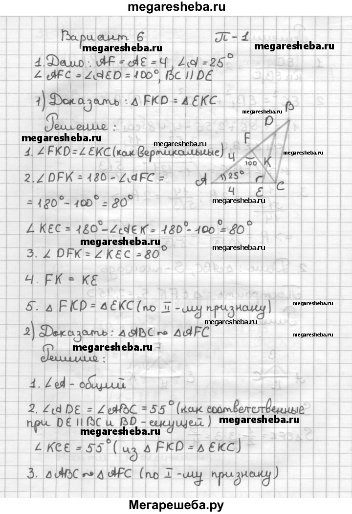 ГДЗ по геометрии 9 класс Зив дидактические материалы Работы на повторение П-1. Варианты - 6