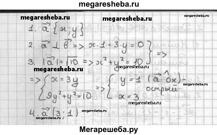 К—3 Вариант 1 1. В равнобедренном треугольнике ABC АВ = ВС = 4, ∠B = 120°, М и N — середины АВ и ВС соответственно. Найдите: 1) ВА-ВС; 2) ВА * АС; 3) MN * АС. 2. Треугольник ABC задан координатами своих вершин: А(0; 4), В(-3; 5), С(-1; 3). 1) Найдите острый угол между медианой AM и стороной АС. 2) Вычислите АВ * ВС + АВ * СА. 3*. Найдите координаты вектора а, если α ⊥ β и b {1; -3}, |а| = √10 и угол между вектором а и осью Ох острый.