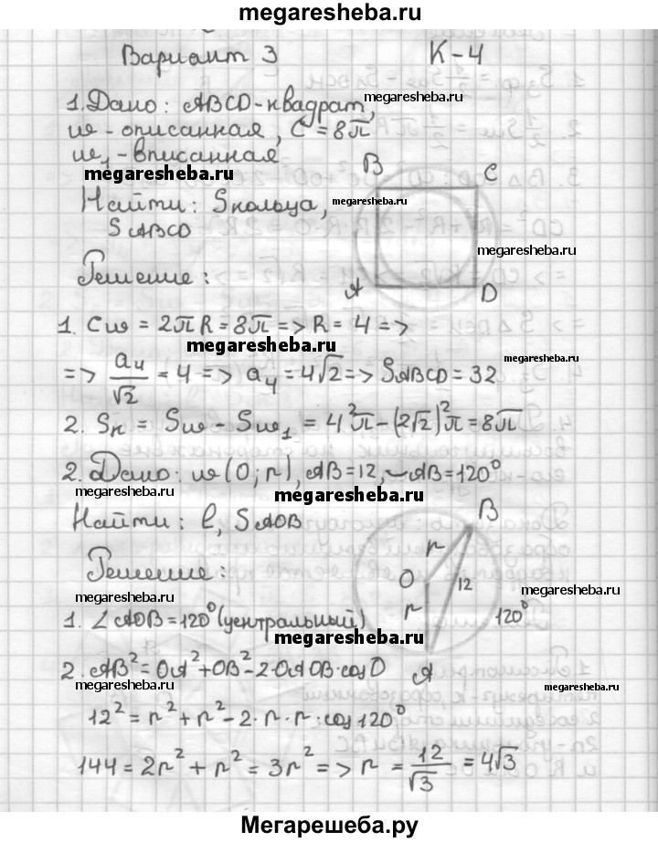 ГДЗ по геометрии 9 класс Зив дидактические материалы Контрольные работы К-4. Варианты - 3