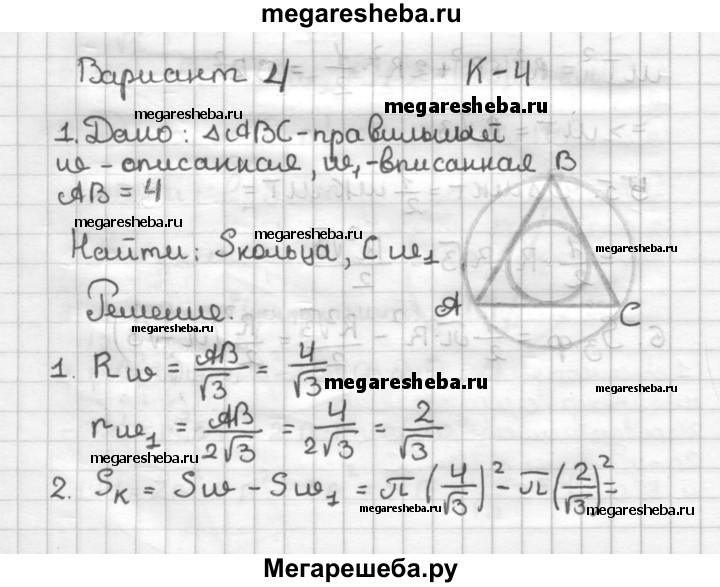 ГДЗ по геометрии 9 класс Зив дидактические материалы Контрольные работы К-4. Варианты - 4
