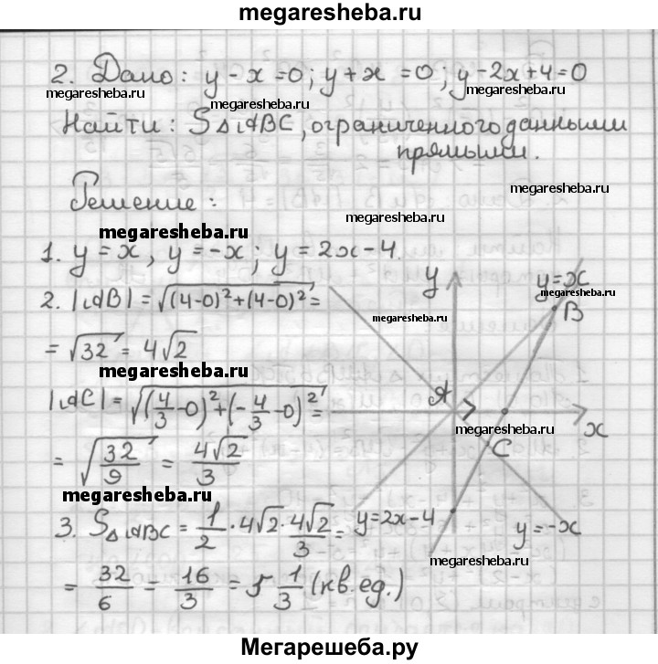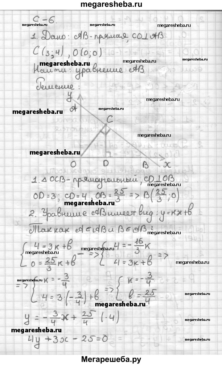 С—6 1. Составьте уравнение прямой, если точка С (3; 4) служит основанием перпендикуляра, проведенного из начала координат на эту прямую. 2. Найдите площадь треугольника, ограниченного прямыми у - х = 0, у + х = 0иу-2х + 4-0.