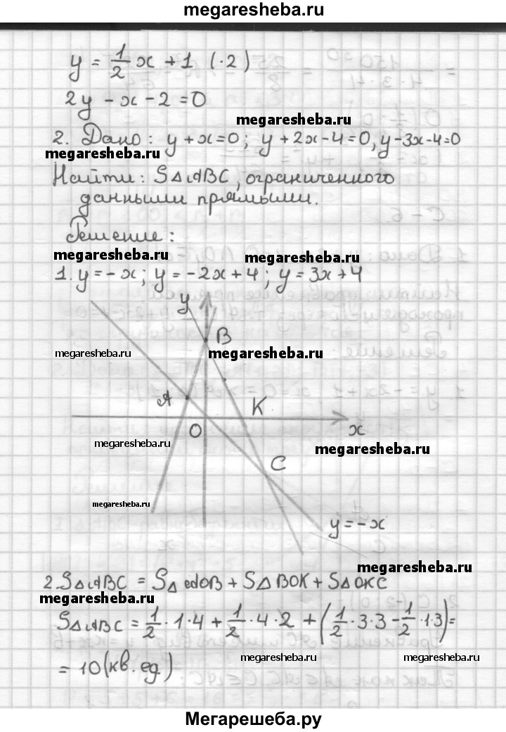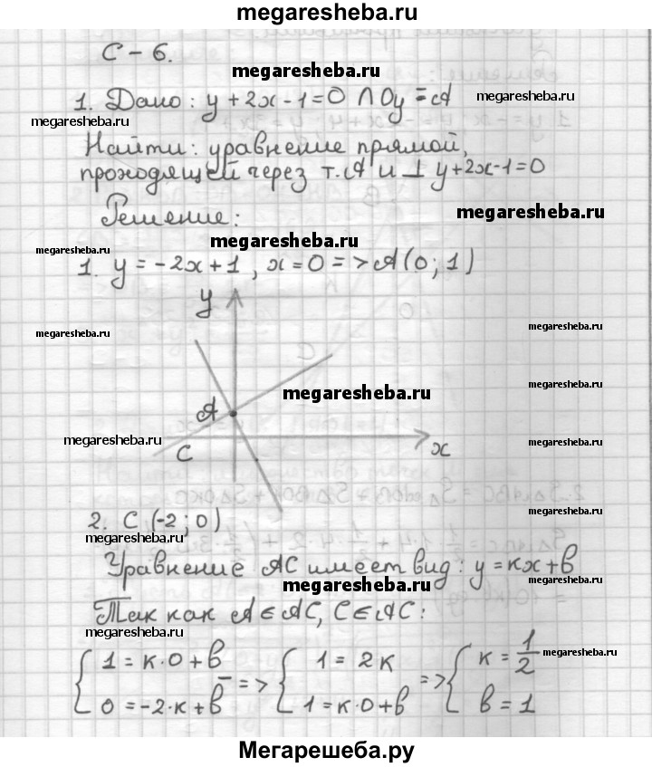С—6 1. Прямая у + 2х - 1 = 0 пересекает ось Оу в точке А. Напишите уравнение прямой, проходящей через точку А и перпендикулярной к данной прямой. 2. Найдите площадь треугольника, ограниченного прямыми у + х = 0, у + 2х-4 = 0 и у-3х - 4 = 0.