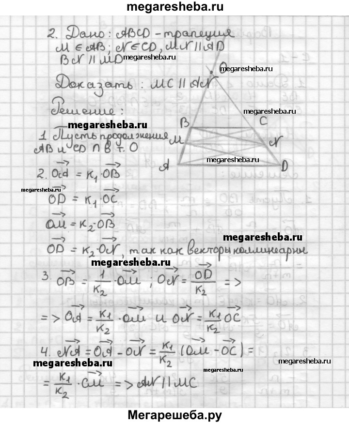 С—1 2. В треугольнике ABC Е ∈ ВС и D ∈ АС, причем BE/EC = 5/4 AD/DC = 2/3, А.Е пересекает B.D в точке О. Найдите BO/OD 2. В трапеции ABCD, где AD и ВС — основания, М ∈ АВ и N ∈ CD, причем MN || AD. Докажите, что если BN || MD, то и МС || AN.
