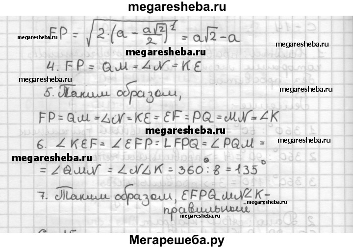 С—14 1. Какими равными правильными многоугольниками можно покрыть плоскость без просветов? 2. От каждой вершины квадрата на его сторонах отложены отрезки, равные половине его диагонали. Полученные восемь точек последовательно соединены отрезками. Определите вид полученного восьмиугольника.