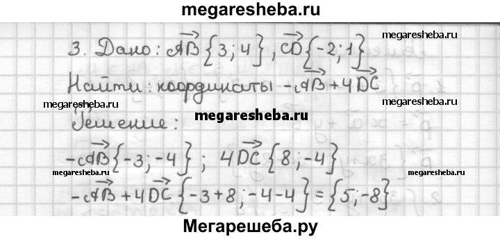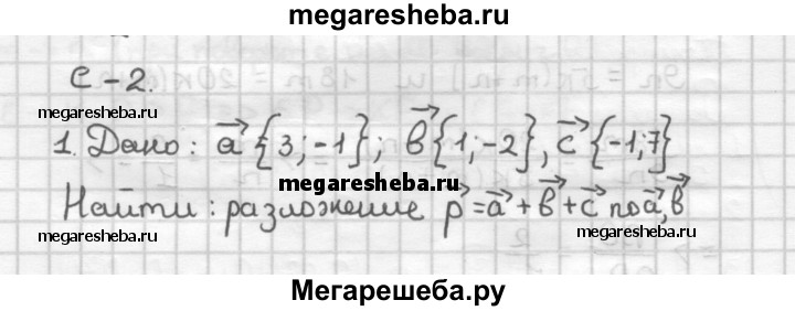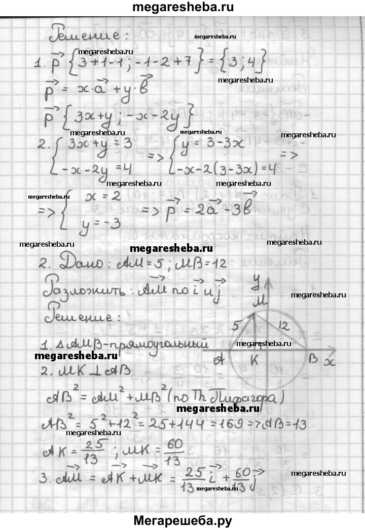 С—2 1. Даны три вектора а {3; -1}, Ъ {1; -2} и с {-1; 7}. Найдите 2. На рисунке 38 AM = 5, MB = 12. Разложите вектор AM по координатным векторам i и j. 3. Векторы АВ и CD заданы своими координатами: АВ {3; 4}, CD {-2; 1}. Найдите координаты вектора - АВ + 4 DC.