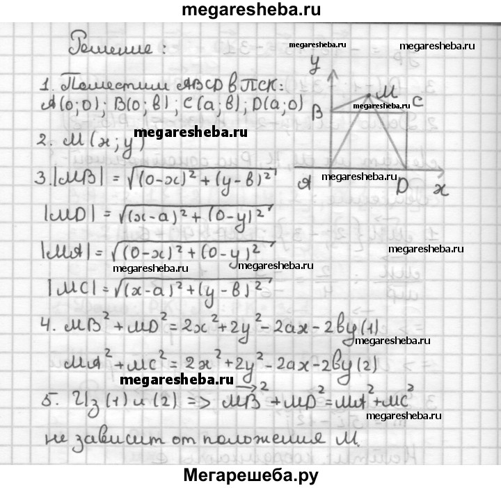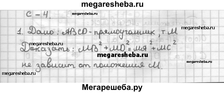С—4 Даны прямоугольник ABCD и точка М. Докажите, что равенство MB2 + MD2 = МА2 + МС2 не зависит от положения точки М.