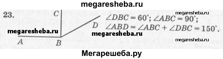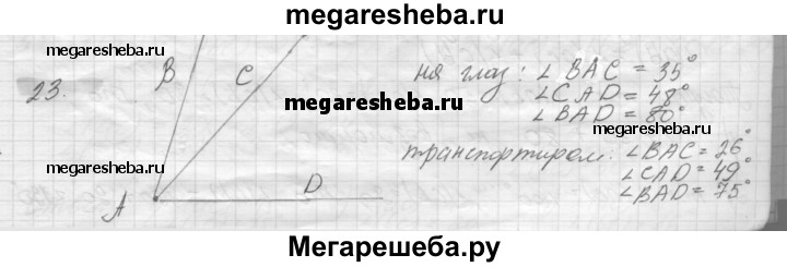23 Проведите из одной точки три произвольных луча. Определите на глаз углы, образуемые этими лучами. Проверьте ваши ответы, измеряя углы транспортиром. Повторите упражнение.