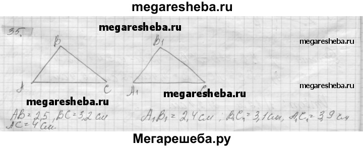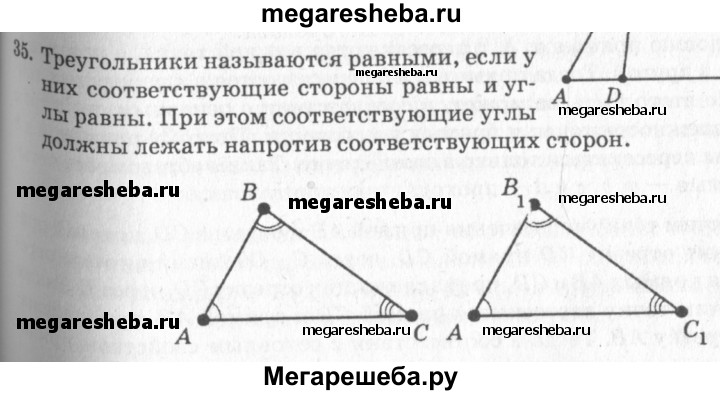 35. Начертите какой-нибудь треугольник. Постройте от руки на глаз равный ему треугольник. Проверьте правильность построения, измеряя соответствующие углы и стороны. Повторите упражнение.