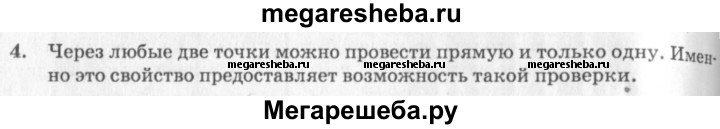 4. Для проверки правильности линейки применяют такой способ. Через две точки с помощью линейки проводят линию (рис. 27). Затем линейку переворачивают и через те же точки снова проводят линию. Если линии не совпадают, то линейка неправильная. На каком свойстве прямых основан этот способ проверки правильности линейки? Рис. 27
