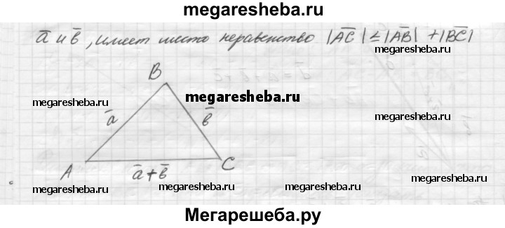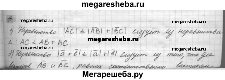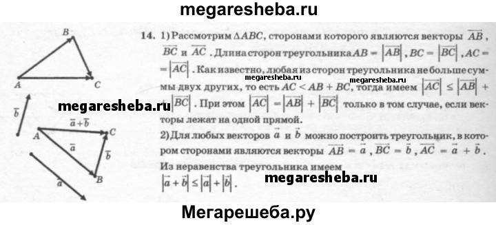 14. 1) Докажите что для векторов АВ, ВС и АС имеет место неравенство |AC| ≤ |AB| + |BC|. 2) Докажите, что для любых векторов а и b имеет место неравенство |а + b| ≤ |а| + |b|.