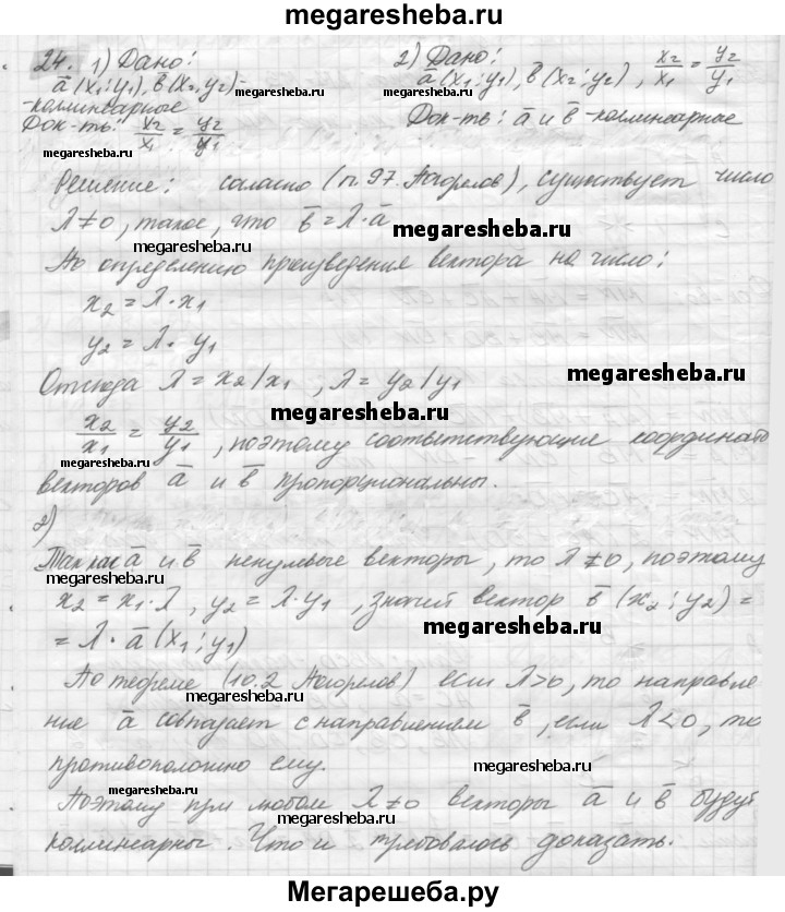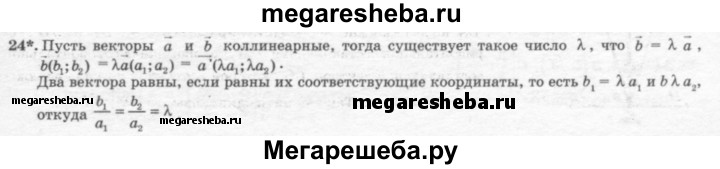 24. Докажите, что у коллинеарных векторов соответствующие координаты пропорциональны. И обратно: если у двух ненулевых векторов соответствующие координаты пропорциональны, то эти векторы коллинеарны.