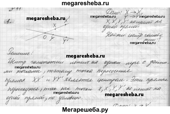 1. При гомотетии точка X переходит в точку X', а точка У — в точку У'. Как найти центр гомотетии, если точки X, X', Y, Y' не лежат на одной прямой?