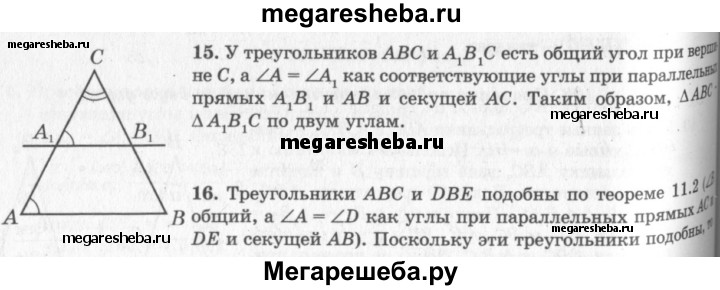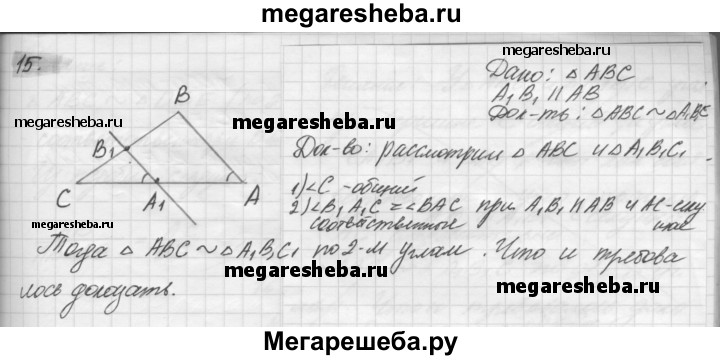 15. Прямая, параллельная стороне АВ треугольника ABC, пересекает его сторону АС в точке А1? а сторону ВС в точке В1. Докажите, что ΔАВС™ ΔА1B1С1.