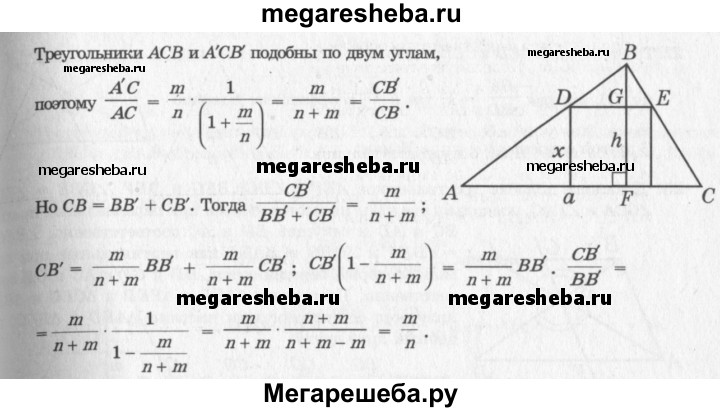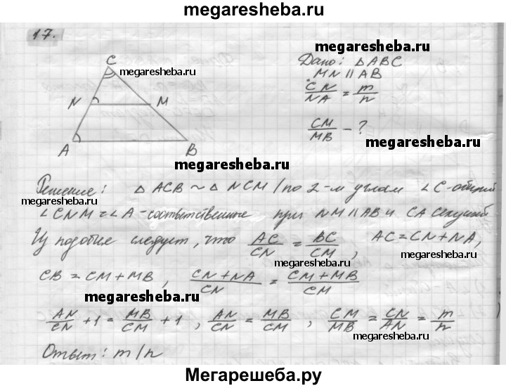 17. Прямая, параллельная стороне АВ треугольника ABC, делит его сторону АС в отношении m : n, считая от вершины С. В каком отношении она делит сторону ВС?