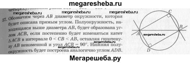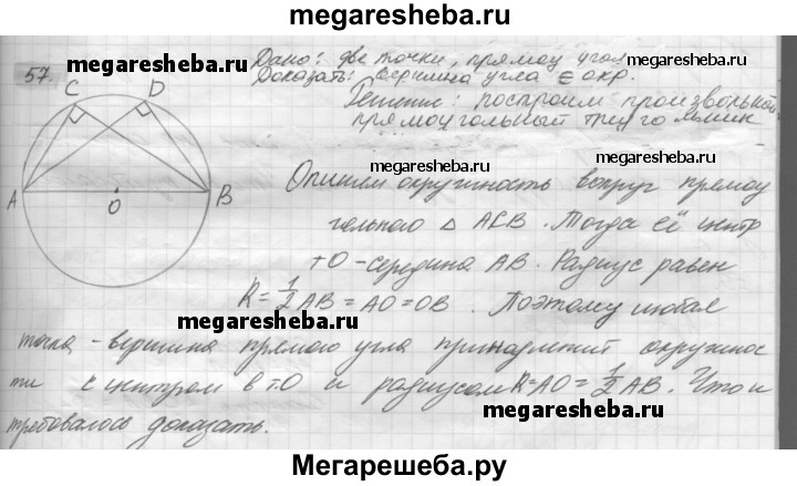 57. Докажите, что геометрическое место вершин прямых углов, стороны которых проходят через две данные точки, есть окружность.