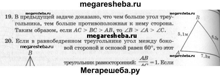 19 У треугольника ABC стороны АВ = 5,1 м, ВС = 6,2 м, АС = 7,3 м. Какой из углов треугольника наибольший, какой наименьший?
