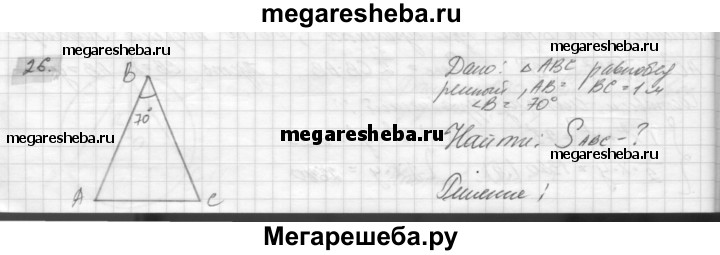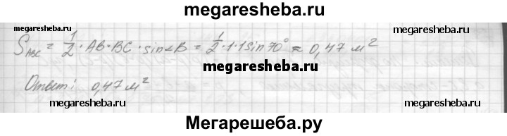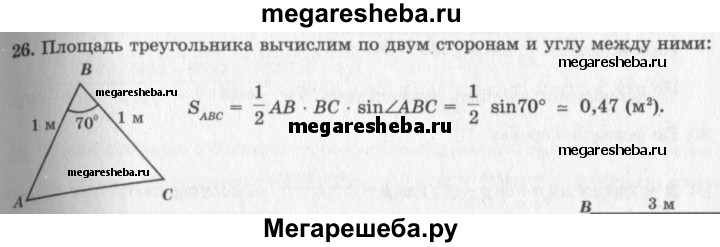 26. Найдите площадь равнобедренного треугольника, у которого боковые стороны равны 1 м, а угол между ними равен 70°.