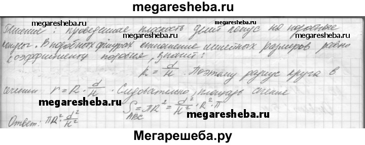 49 Конус пересечён плоскостью, параллельной основанию, на расстоянии d от вершины. Найдите площадь сечения, если радиус основания конуса R, а высота Н.