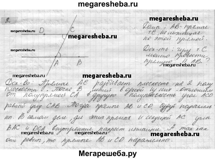 8. Даны прямая АВ и точка С, не лежащая на этой прямой. Докажите, что через точку С можно провести прямую, параллельную прямой АВ.