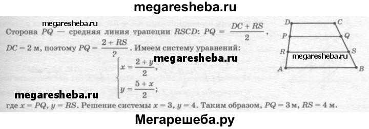 59. Боковая сторона трапеции разделена на три равные части и из точек деления проведены к другой стороне отрезки, параллельные основаниям. Найдите длины этих отрезков, если основания трапеции равны 2 м и 5 м.