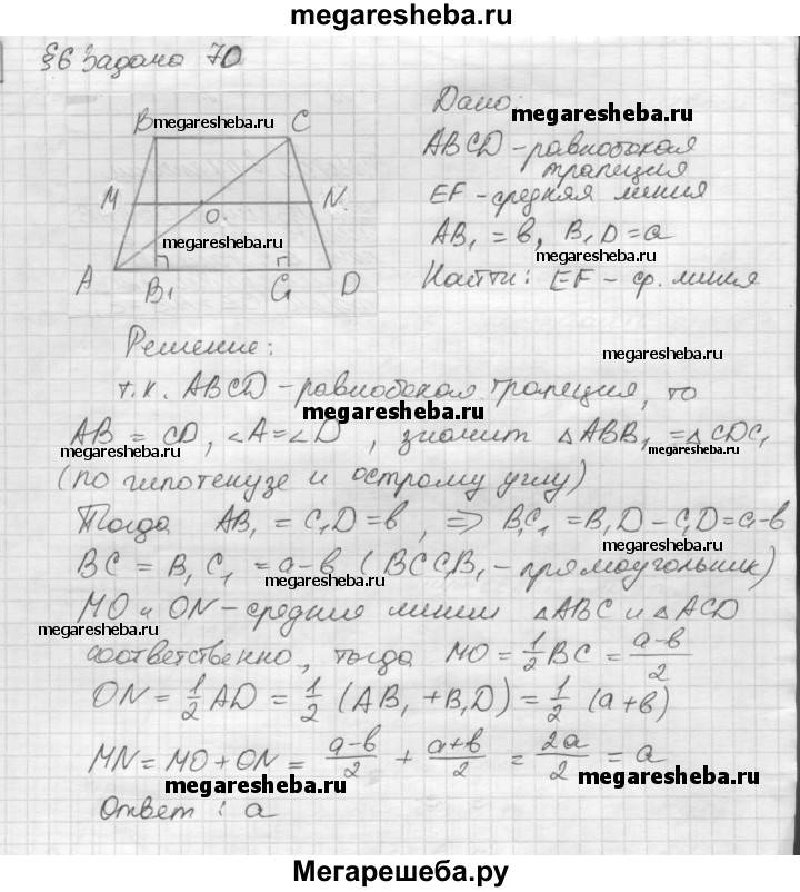 Подробный решебник (ГДЗ) по Геометрии за 7‐9 (седьмой‐девятый) класс - готовый ответ параграф-6 - 70. Авторы учебника: Погорелов. Издательство: Просвещение .
