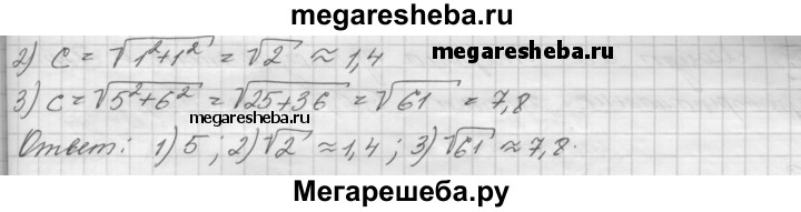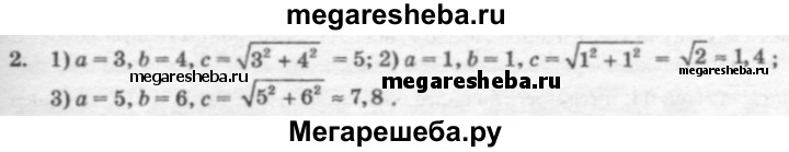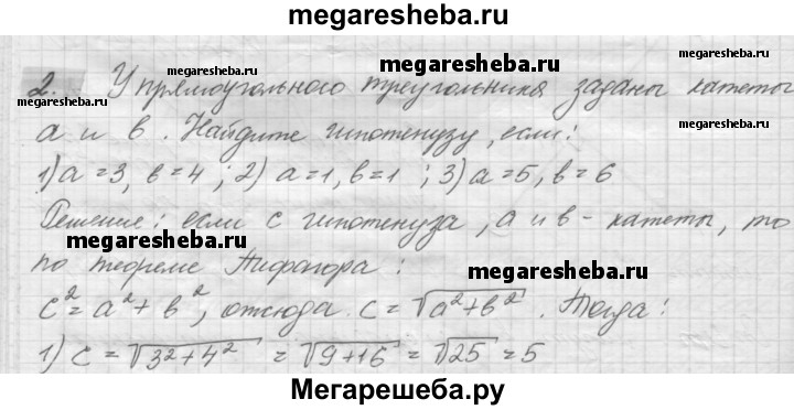2. У прямоугольного треугольника заданы катеты а и Ъ. Найдите гипотенузу, если: 1) а = 3, b = 4; 2) a = 1, 6 = 1; 3) a = 5, b = 6.