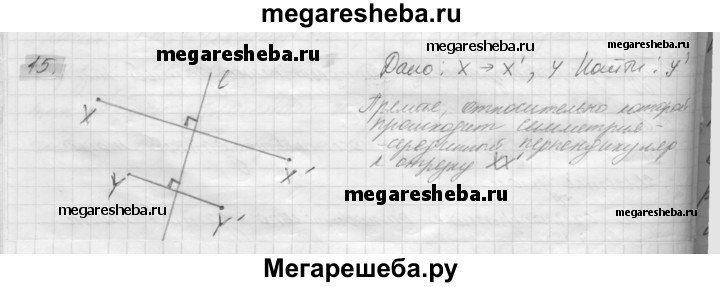 15. При симметрии относительно некоторой прямой точка X переходит в точку X'. Постройте точку, в которую при этой симметрии переходит точка Y.