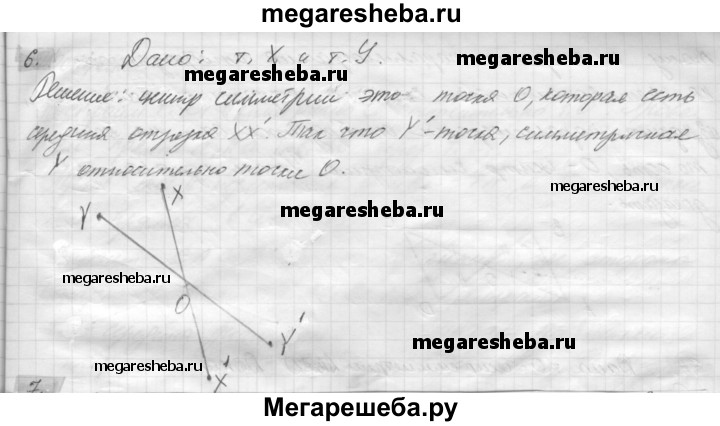 6. При симметрии относительно некоторой точки точка X переходит в точку X'. Постройте точку, в которую при этой симметрии переходит точка Y.