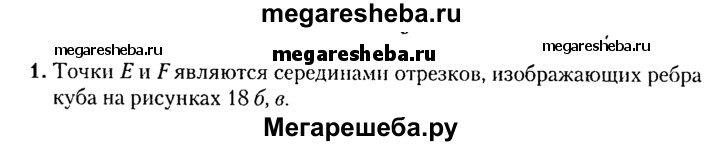 1. На рисунке 18, а изображена развертка куба, точки Е и F - середины сторон квадрата. На рисунке 18, б, в изображен куб, модель поверхности которого можно склеить, пользуясь данной разверткой. Верно ли, что точки Е и F на рисунке 18, б, в должны быть серединами отрезков, изображающих ребра куба?